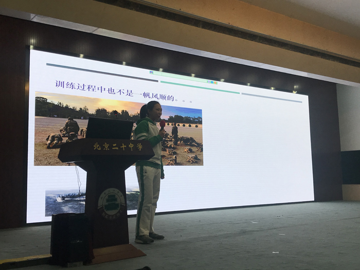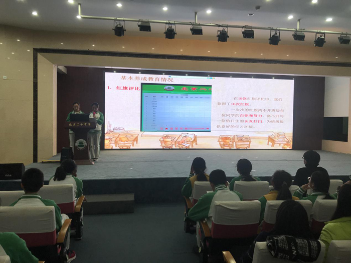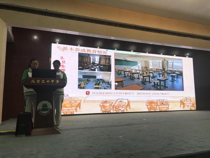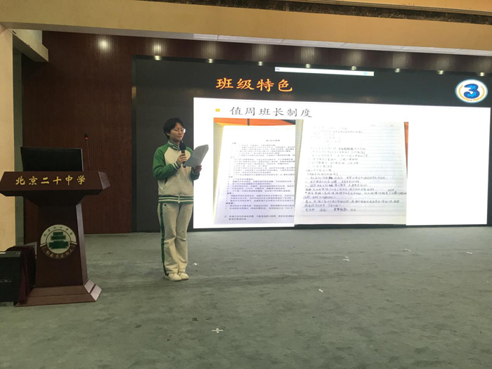 展示中有从八月初见共历军训考验到夏秋之交同心协力齐赴运动赛场,从集思广益创造纸板车佳绩到声情并茂铸就朗读风采,从模拟招聘中热血角逐到首都博物馆里社会实践学习的记忆缩影。有目共睹的是壁报展板上各色奖状与七彩粉笔绘出的多姿文化,是班级里窗明几净与同学们仪表整洁青春焕发的脸庞,是“人人有事做、事事有人干”的班干部创新责任制与“全自动化作业上交流水线”的智慧创意,是彼此间暖心的关切问候与面对困难时的互帮互助,处处彰显着同学们团结奋进、力争上游的昂扬精神。