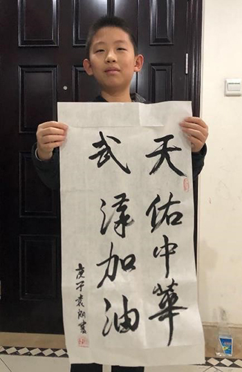 初一和初二年级的同学们在学校和老师的引导下,在家长的帮助下,制作手抄报、漫画、书法作品等,为武汉加油。