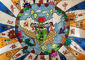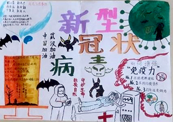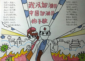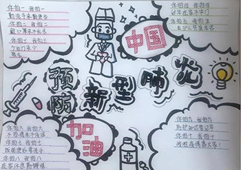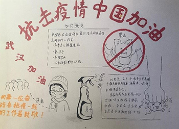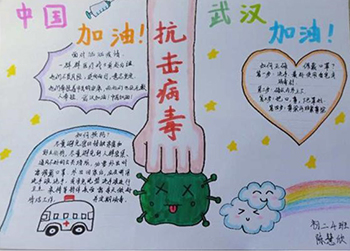 其他班级的同学也通过手抄报、书法、漫画作品展示了自己抗击病毒的决心和信心。