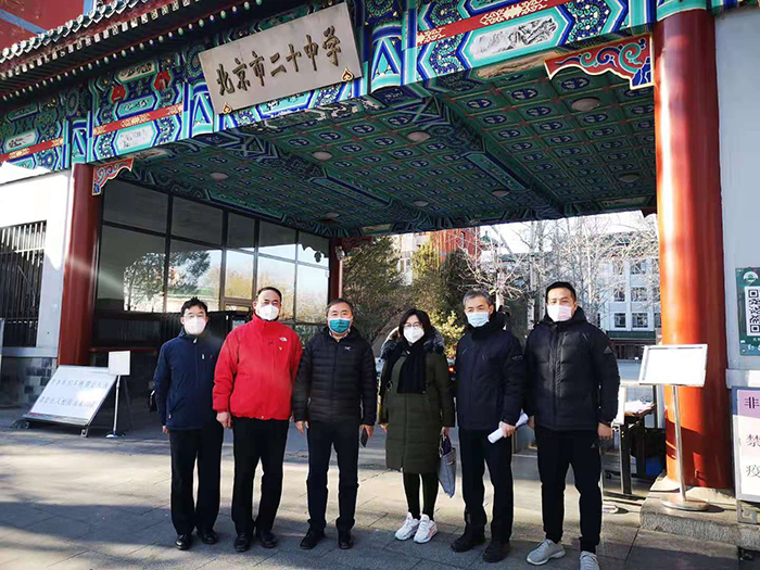 海淀教委王方主任带领检查组莅临北京市第二十中学检查疫情期间学校各项工作