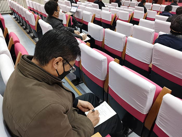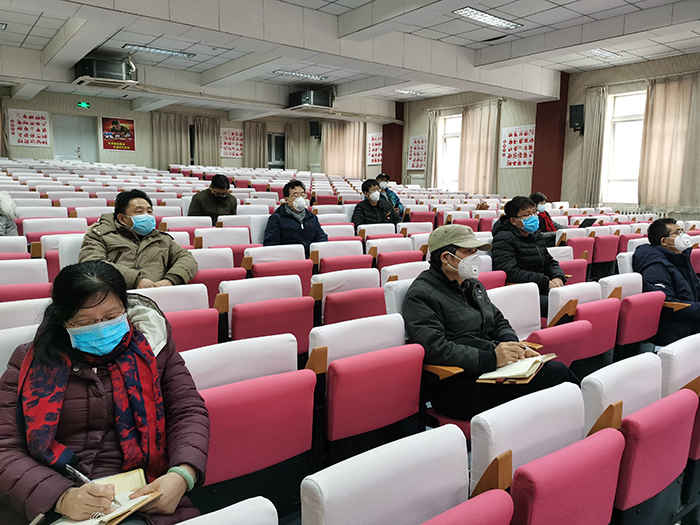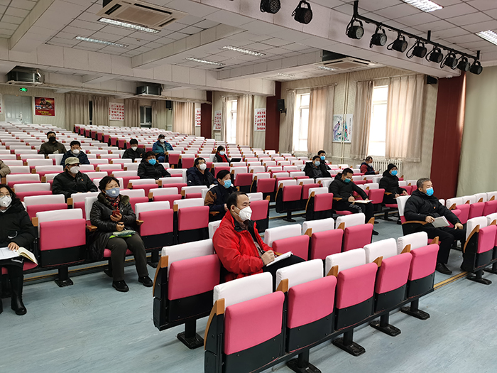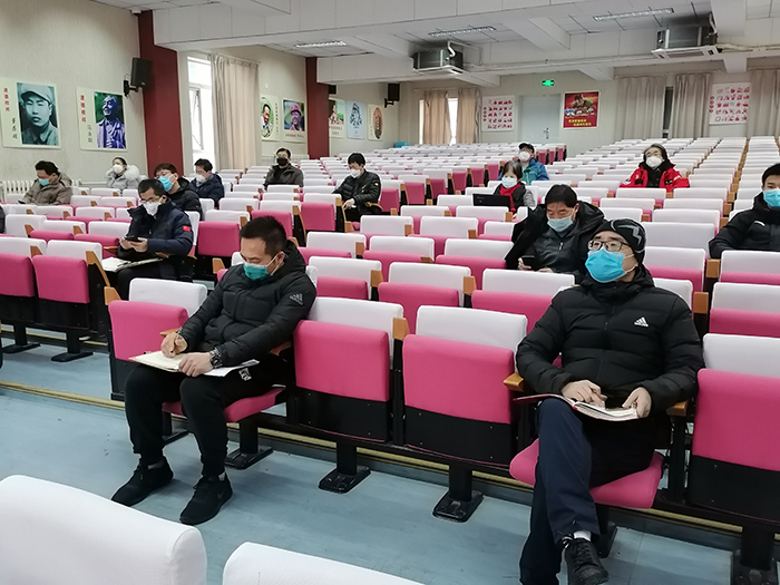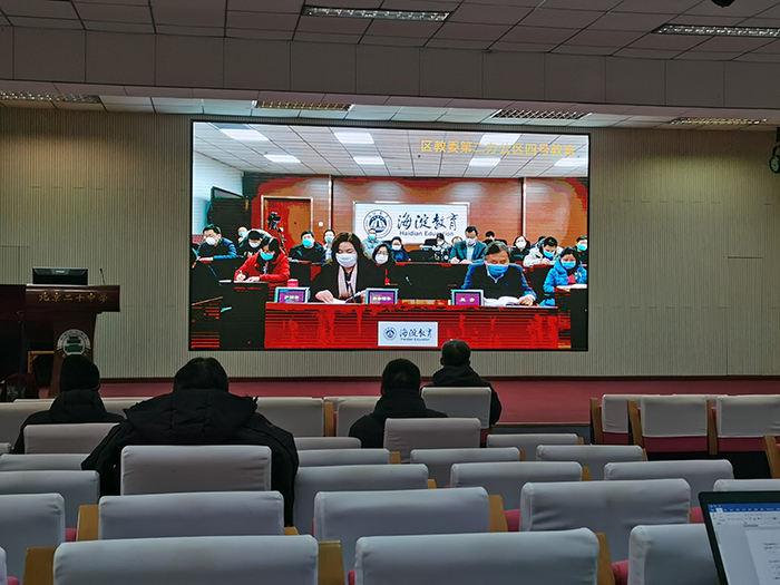 2020年2月12日下午3:00,北京市第二十中学教育集团(小营校区、新都校区)全体在京干部,在学校艺术中心一层礼堂参加“海淀区中学延期开学工作视频会议”。