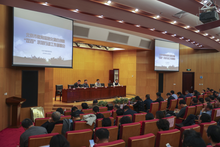 按照《北京市教育委员会关于开展教育信息化融合创新“双百”示范行动的通知》(京教函〔2019〕270号)要求,我校积极参与了“双百示范基地”申报,经市教委组织专家初选、会议评审和公示等程序,全市共有74个智慧校园融合应用示范基地、58个“信息技术与课堂应用融合创新课题”入选2019年北京市教育信息化融合创新“双百”示范行动项目,我校荣获北京市教委“双百示范基地”授牌。