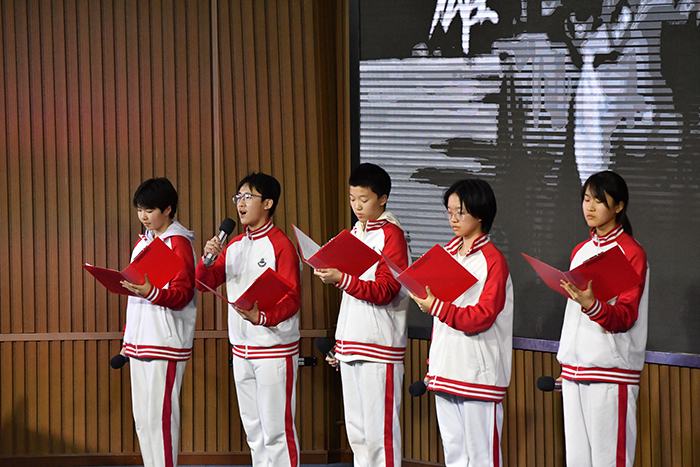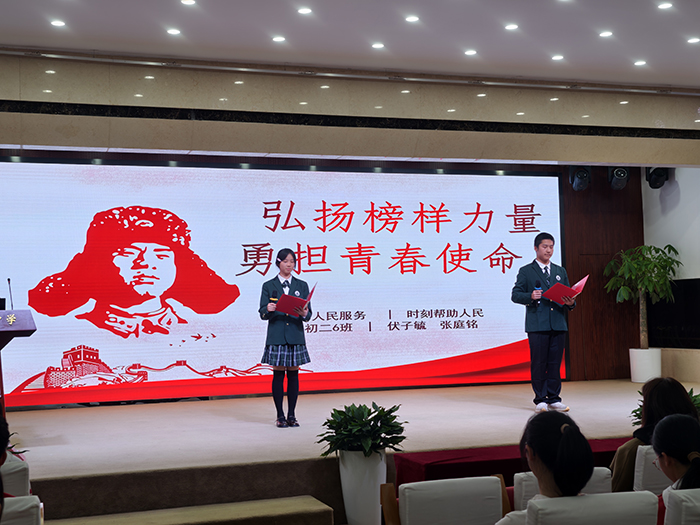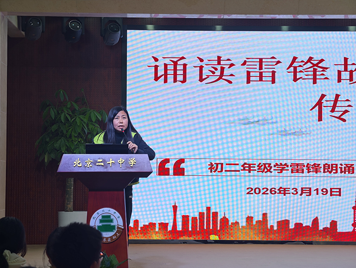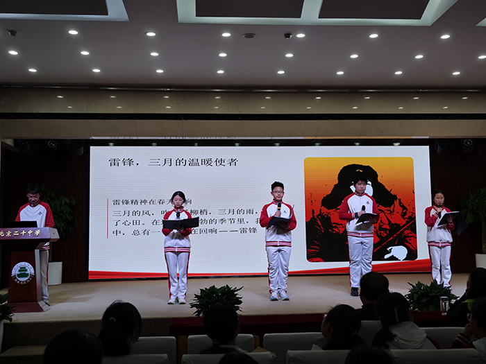 三月春风暖,精神永流传。为深入弘扬雷锋精神,引导广大学生树立正确的价值观,初二年级于3月19日成功举办了一场以“讲述雷锋故事,传承榜样力量”为主题的朗诵比赛。董红军校长、孙玉柱书记、李浴振副校长、刘晨曦副主任、徐晓军副主任亲临现场。活动现场气氛热烈,来自各班的参赛选手以声传情,以诵明志,为全年级师生带来了一场涤荡心灵的精神盛宴。
