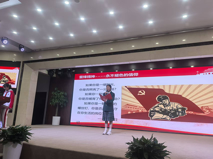 为了能在比赛中展现出最佳风采,各班级均投入了极大的热情与努力。从精心挑选朗诵篇目,到深入揣摩雷锋事迹,每一个环节都凝聚着集体的智慧与汗水。比赛现场,气氛庄重而热烈。选手们依次登台,他们着装整齐,精神饱满。伴随着或舒缓或铿锵的配乐,一篇篇颂扬雷锋同志、赞美无私奉献精神的诗文在礼堂中回荡。有的班级选择多人合诵,通过默契的配合营造出层层递进的情感波澜;有的选手则独挑大梁,以极具感染力的嗓音直击人心。他们用真挚的情感、生动的语言,不仅诠释了对雷锋精神的理解与感悟,更表达了对雷锋同志的深切缅怀和崇高敬意,精彩的朗诵赢得了台下观众的阵阵掌声。