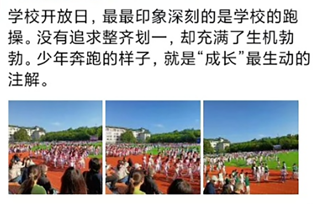 第一节课落幕,课间操时间随即到来,家长们跟随着指引来到操场观看。只见学生们迅速列队,队伍规整有序;伴随着轻快的音乐,大家动作标准、精神饱满,展现出蓬勃的少年活力与强烈的集体纪律意识,让在场家长纷纷点头称赞。