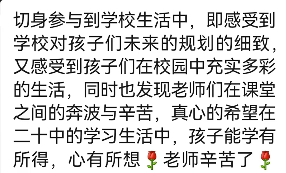 不少家长还提到,通过与老师的间接观察和交流,能感受到老师们不仅专业负责,更对孩子充满耐心,“从课堂上对每个学生的关注,到讲座中给出的实用建议,都能看出老师是真的在为孩子着想”。大家一致认为,这次开放日让他们对学校的教学质量、管理水平和教师素养有了全面的认可,也更有信心与学校携手,助力孩子在初中阶段稳步成长。