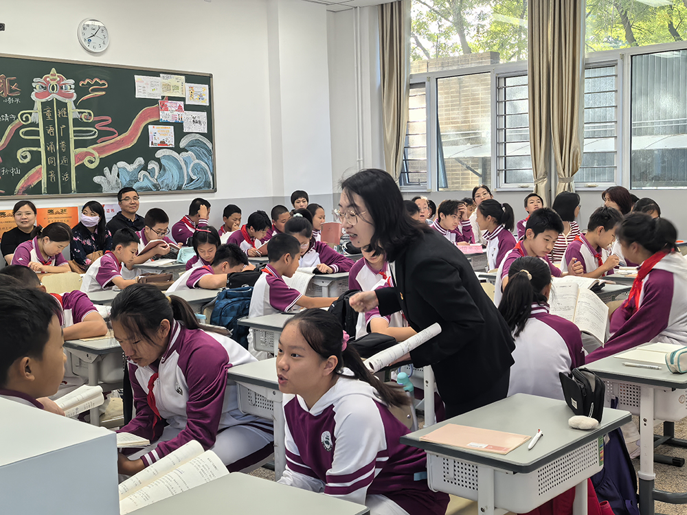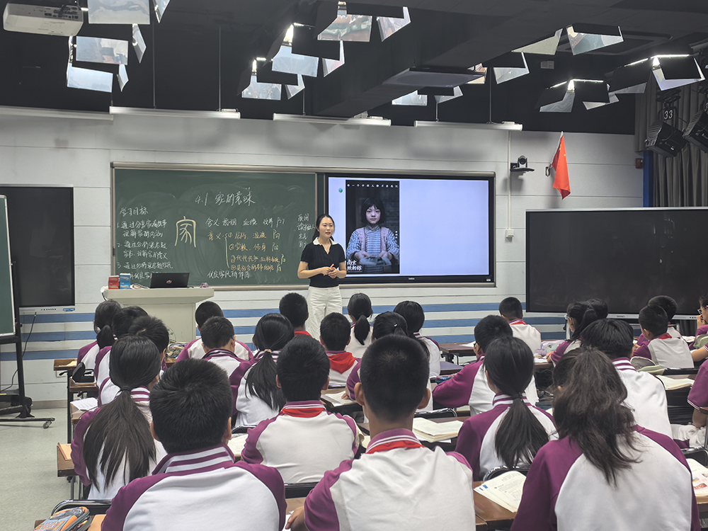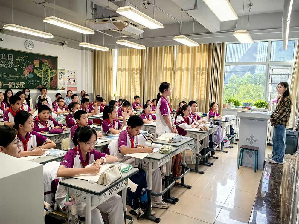 在第一节课上,家长走进教室参与研究课观摩。初一年级教师结合学生认知特点,通过精心设计的互动问答、小组 PK、情境模拟等方式,充分调动学生课堂积极性。课堂氛围活跃,学生举手发言踊跃,回答问题逻辑清晰、准确率高,展现出良好的学习状态和活跃的思维能力。规范工整的板书、趣味与知识兼具的教学设计,不仅让家长直观感受到初中课堂的独特魅力,更体现了学校在初一年级教学研究上的深耕与创新,以及教师对学生学习习惯培养的用心。