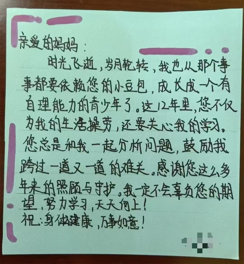 这场简单却真挚的感恩活动,不仅让学生学会表达对父母的感谢,更让家长感受到孩子进入初中后的成长与蜕变,为家校共育增添了温暖的情感底色。