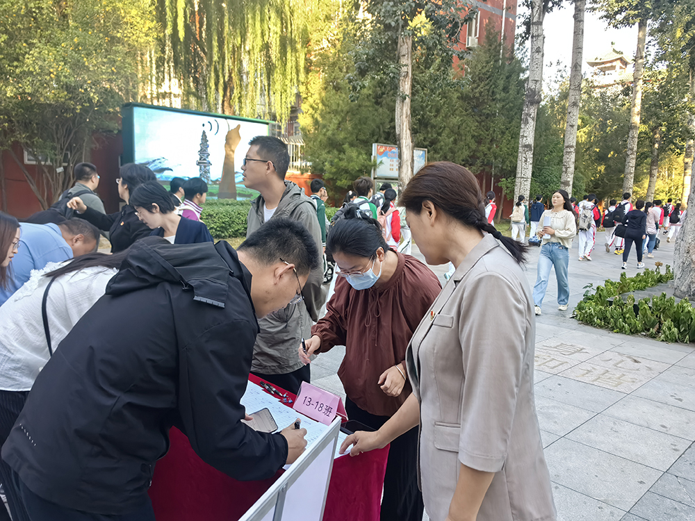 活动当天,家长们的参与热情高涨。上午7:20起,家长们陆续在学校南门签到并领取相关资料,有序开启本次开放日行程。