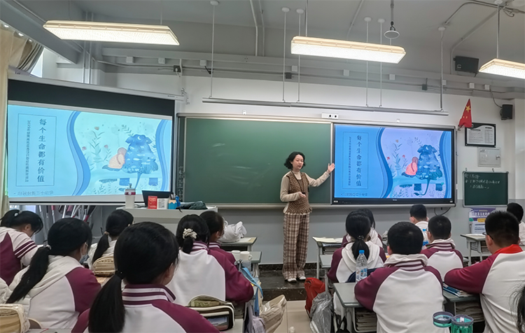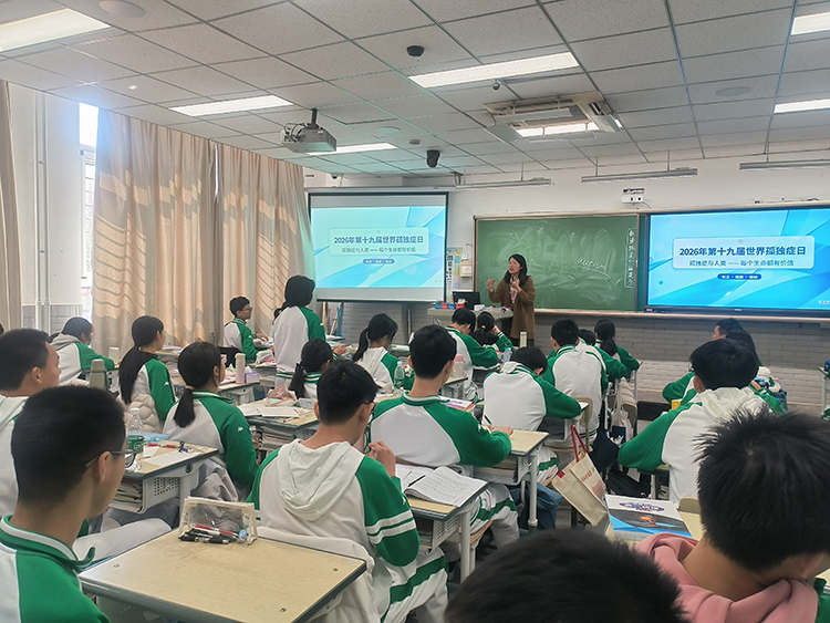 活动期间,校园宣传屏滚动播放科普知识,营造理解与接纳的氛围。心理课上,心理老师带领心理委员共同开展科普宣教,以“听觉过载”“规则怪谈”等体验式游戏,让同学们亲身感受孤独症群体在感官超载和社交沟通中的真实困难,从而理解那些“不一样”的行为并非主观选择,而是源于神经系统的客观差异。课上还介绍了高校特殊教育、融合教育等专业前景及“影子老师”“包容性设计师”等友好型职业,将对孤独症群体的理解延伸至更广阔的生命关怀。