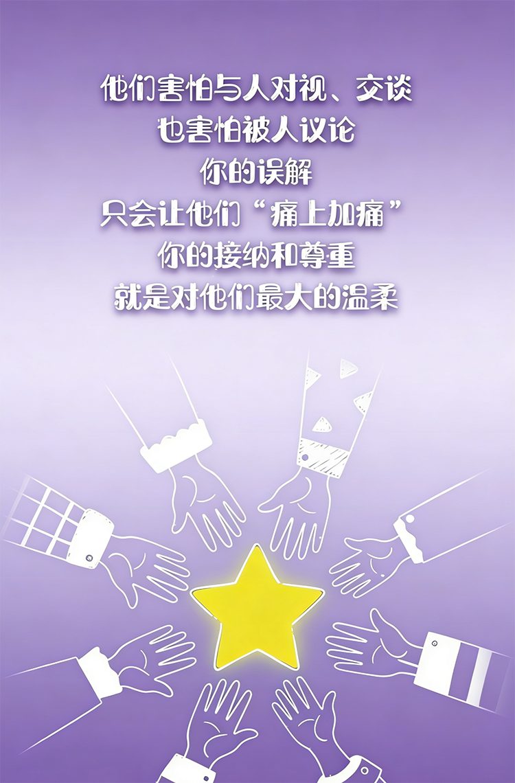 社会上仍存在诸多认知误区,我们需要认识到:孤独症不是不良教养方式导致,也不是性格内向;并非所有患者都有特殊天赋,“天才”仅占极少数;孤独症不会随年龄增长而“自愈”;患者并非“活在自己的世界里”,他们渴望连接,只是需要不同的沟通方式。