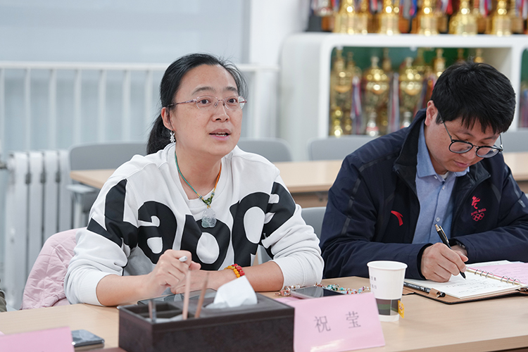 座谈会由我校体育教研室主任景慧娟主持。首都体育学院武术与表演学院党委书记祝莹、院长张洋、副书记王荣波、副院长张长念、带队教师杨秀丽教授,及我校副校长吴玉国、体卫中心副主任孙超等出席活动。