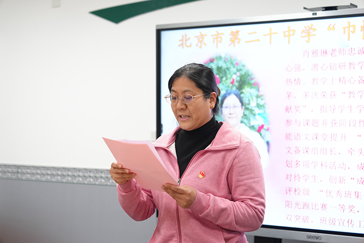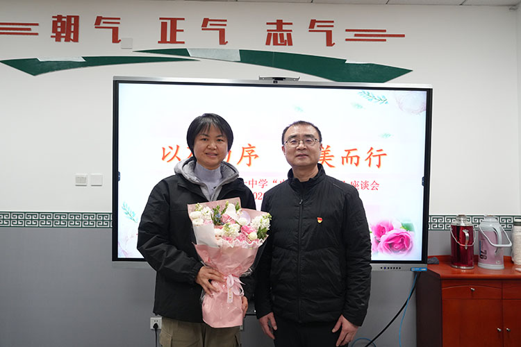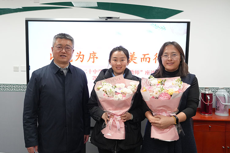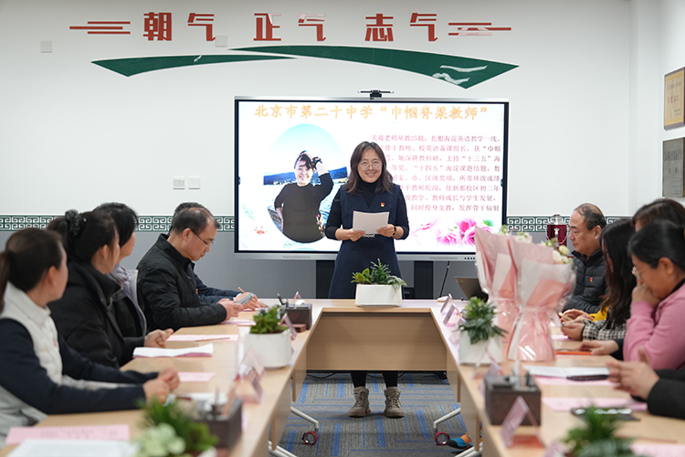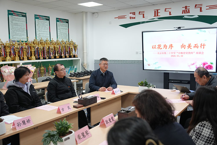 春风送暖,花开芬芳。在第116个“三八”国际劳动妇女节之际,2026年3月10日,北京市第二十中学隆重召开了以“以花为序,向美而行”为主题的“巾帼脊梁教师”座谈会。会议由党政办公室副主任刘馨临主持,校党委书记孙玉柱、校长董红军携校领导班子成员与12位荣获“巾帼脊梁”称号的女教师代表欢聚一堂,共话教育情怀。