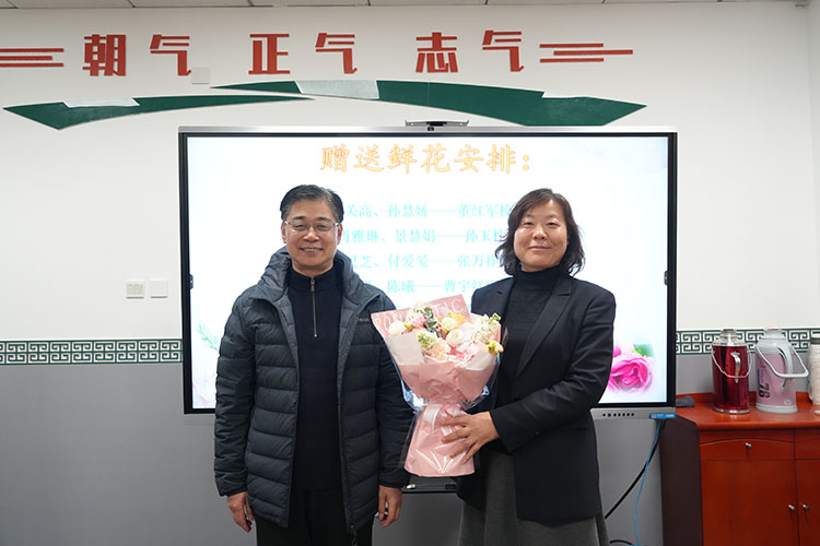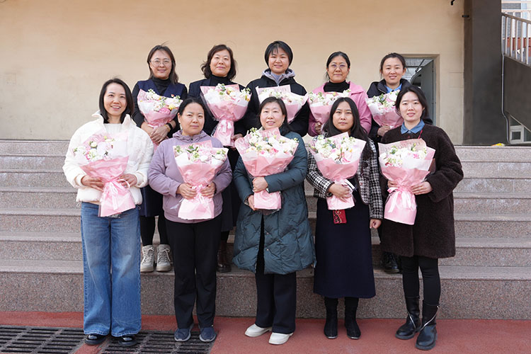 会议伊始,全体与会人员共同观看了专门为“巾帼脊梁教师”制作的短片。一帧帧画面生动展现了优秀女教师在日常工作中的育人风采,她们在平凡岗位上展现出的专业与敬业精神,深深感染了在场的每一个人。随后,董红军校长致辞。他称赞女教师“以柔克刚”的教育特质,以及谦虚善学、贴合不同阶段学生特点开展教育的独特优势,并祝愿全体女教师保持健康,在育人路上绽放光彩。随后,校领导为12位“巾帼脊梁教师”赠花,并合影留念,定格荣耀时刻。