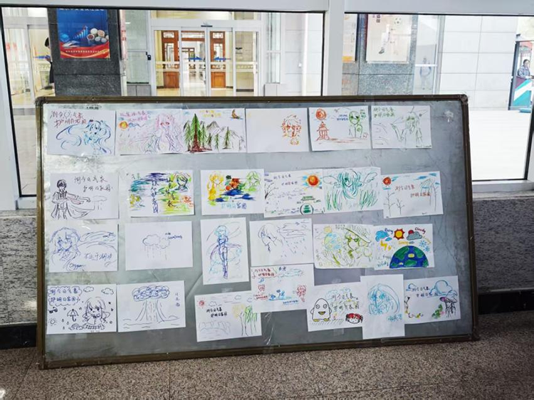 作为特色环节,“气象绘画展”同样引人注目。同学们围绕主题创作,作品色彩丰富、构思巧妙,入选作品在白板上集中展示,创作者还获得了“隐藏款”宇航员胸针。