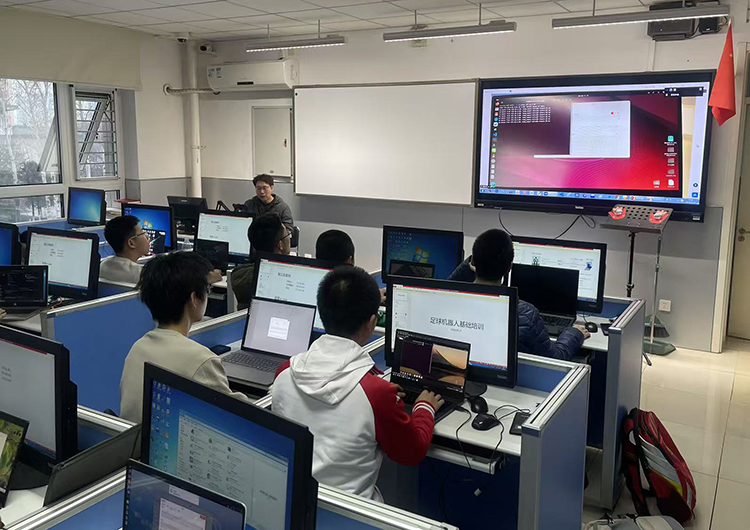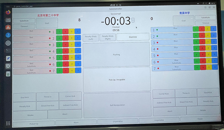 赛场上,我校学子凭借扎实的训练积累,在三轮预选赛中均展现出强劲的竞争力,一路过关斩将、捷报频传:4月3日,预选赛第一轮,我校人形机器人足球队以8:0的悬殊比分完胜育英中学,顺利开启赛事征程;4月10日,第二轮对决中,面对实力强劲的101中学,学子们沉着应对、调整战术,最终以8:2的优异成绩再下一城,巩固了领先优势;4月12日,第三轮关键之战,我校学子顶住压力、稳扎稳打,以4:1的比分击败北京实验学校。