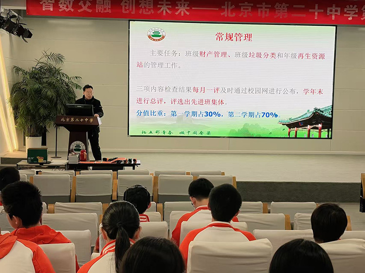 为了积极响应国家教育部在《绿色学校创建行动方案》中提出的要将绿色发展理念全面融入办学体系,将绿色管理理念贯穿于校园规划、建设与日常运行,从而构建全方位、浸润式的育人环境。北京市第二十中学后勤服务中心于3月13日、19日中午分别召开初、高中各班级常规管理总结表彰大会。