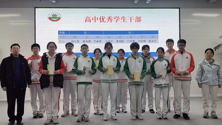 第二项,伊主任为在常规管理中表现突出的优秀班集体颁发奖状,为优秀学生干部颁发奖品。高中部学生干部代表现场分享了自己在工作中的收获与体会,呼吁全体同学养成爱护环境、珍惜资源的良好习惯,共建绿色校园。