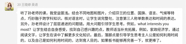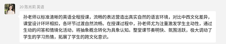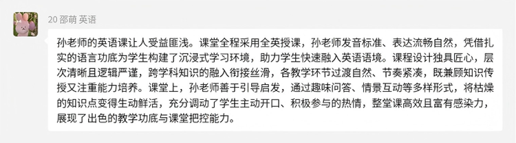 此外,孙老师还将价值观培养巧妙融入教学,在传授知识的同时,引导学生树立正确的生活态度,实现了学科教学与德育教育的有机统一。