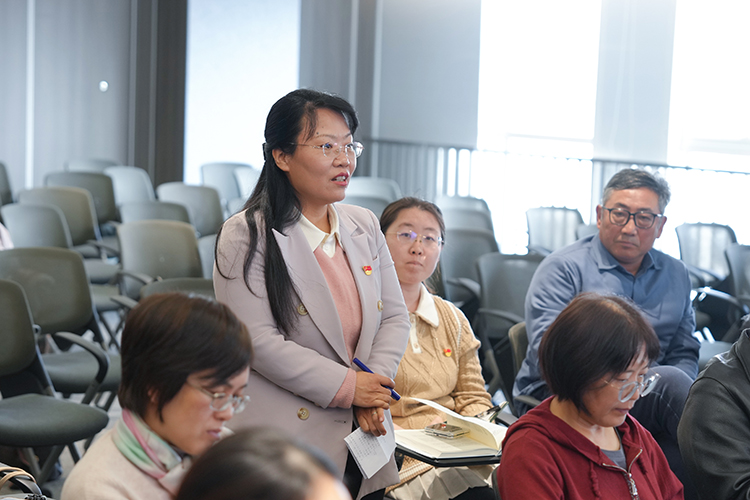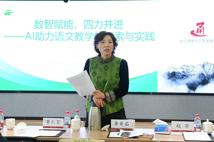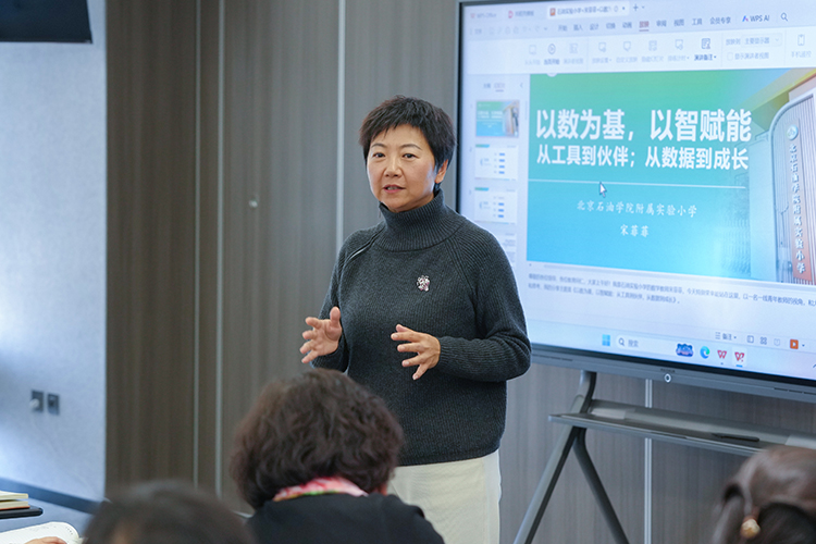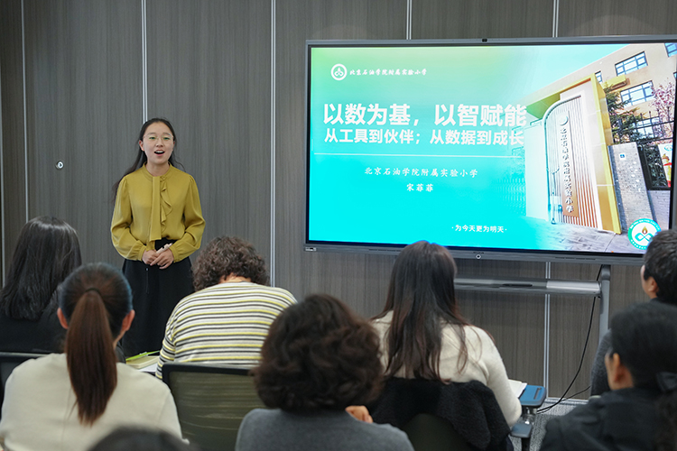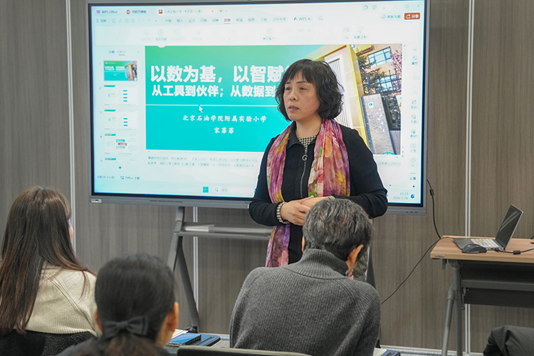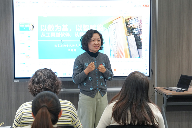 为推动学习成果转化,培训专门设置分组研讨环节。参训干部按高中、初中、小学学段分组,分别由董红军校长、鲁爱茹书记、王梅校长组织,围绕“人工智能如何赋能教育教学”这一核心问题,结合自身工作实际展开深入交流。各学段教师代表北京市第二十中学小营校区袁蒙蒙老师、北京市第二十中学附属实验学校张迪老师、北京石油学院附属实验小学宋菲菲老师分享了智能技术在精准教学、学情分析、个性化辅导及智慧校园管理中的初步应用经验和实践思考。