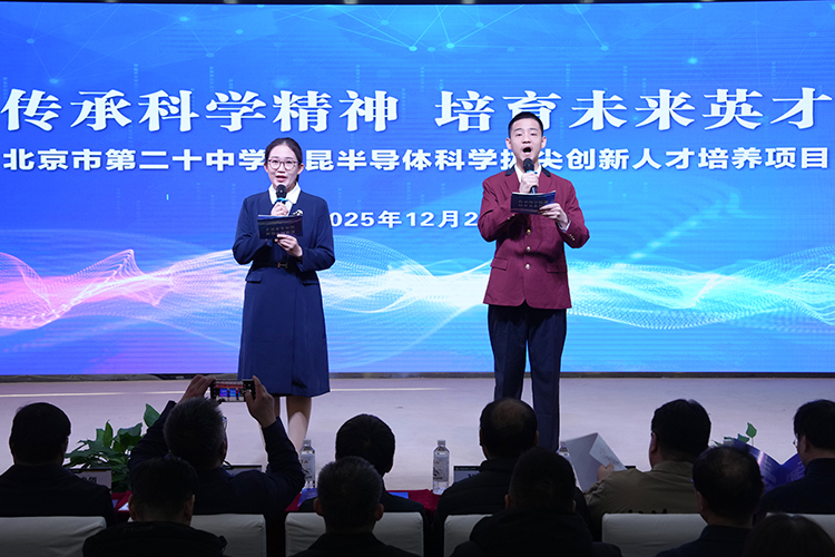2025年12月29日上午,北京市第二十中学与中国科学院半导体研究所联合举办“黄昆半导体科学拔尖创新人才培养项目”启动仪式。该项目以我国半导体物理学奠基人、国家最高科学技术奖获得者黄昆先生命名,旨在通过科教融合、大中贯通的培养模式,通过构建特色课程、创办“黄昆少年班”,创设科研实践与价值塑造的人才培养平台,引领学生树立理想志向,接受科研基础训练,在知识、技能和思维方面打好基础,培养志在报国、具有创新潜能的未来拔尖创新人才。