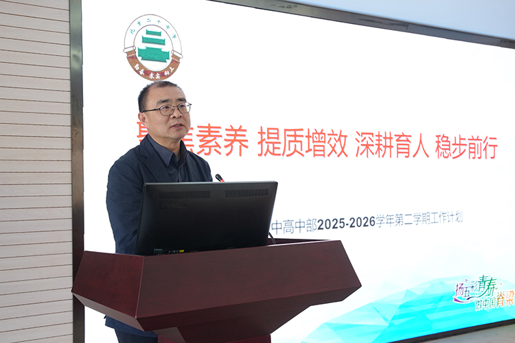 为全面总结过往工作成效,精准谋划新学期发展路径,进一步统一思想、凝聚共识,推动集团教育事业高质量发展,2026年2月26日,北京市第二十中学召开2025-2026学年第二学期开学干部工作会。小营校区、新都校区全体中层及以上干部、年级主任、团委书记齐聚一堂,共商发展大计,共绘育人蓝图,为新学期各项工作开好局、起好步奠定坚实基础。会议由董红军校长主持。