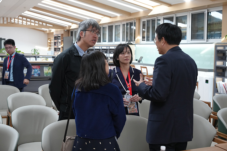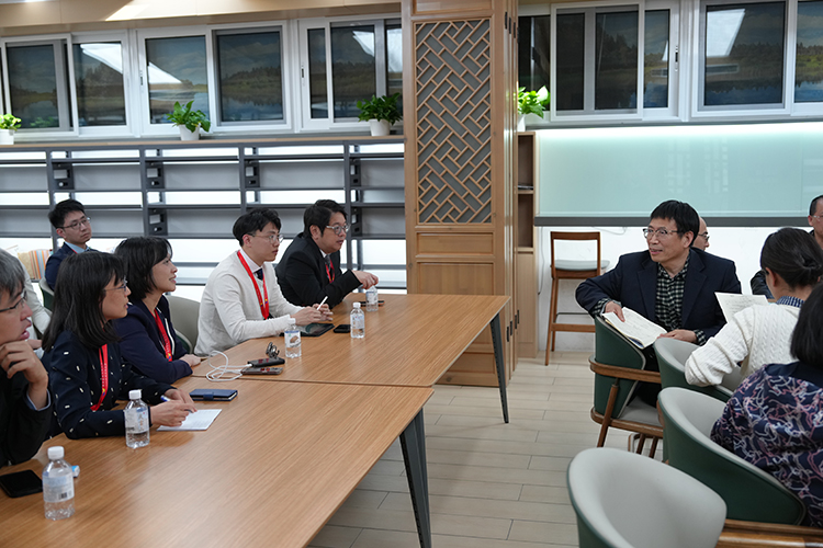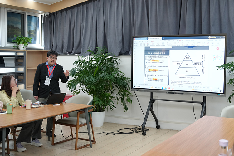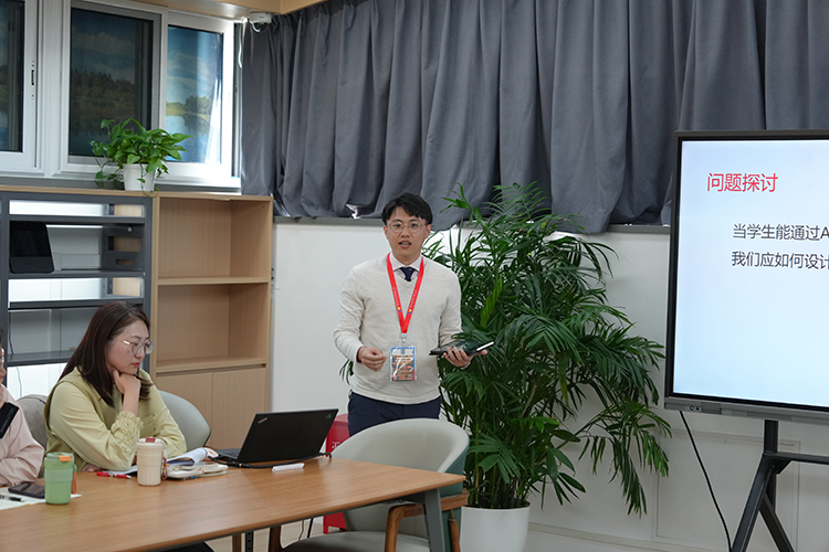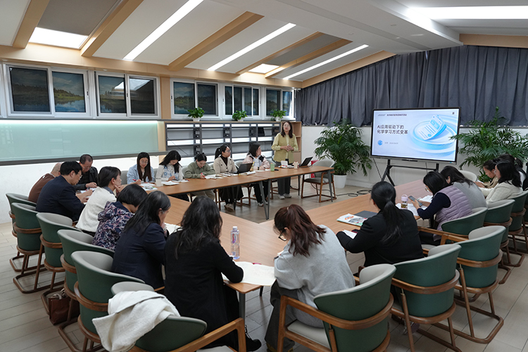 在北楼六层图书馆,代表团旁听了化学教研室以AI赋能教育为主题的教研活动。双方教师围绕AI在化学教学中的应用、智慧教学工具使用等话题深入探讨。香港教师主动上台,分享了本校在AI赋能化学教学方面的教研成果,现场思维碰撞、气氛热烈。