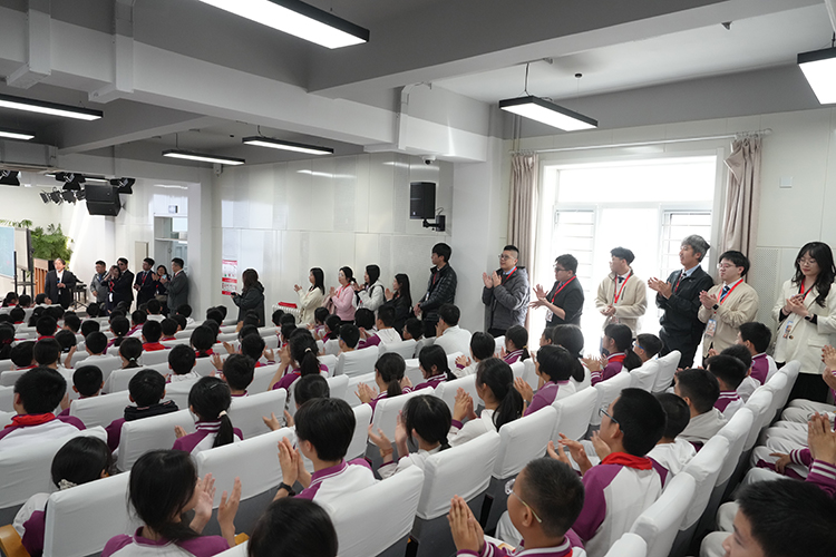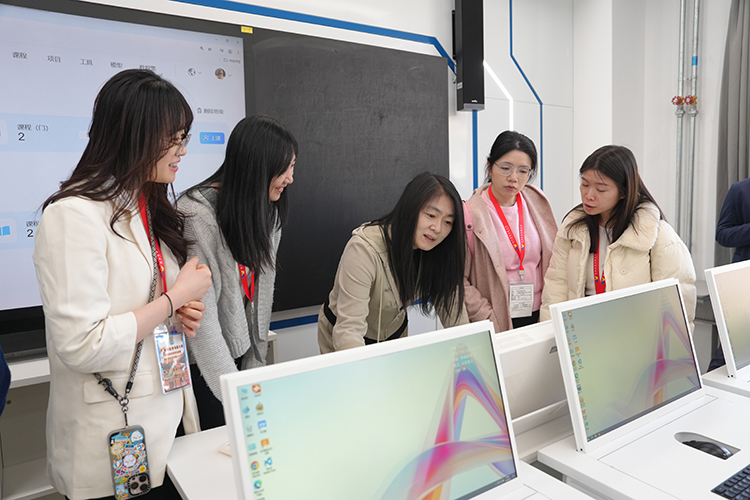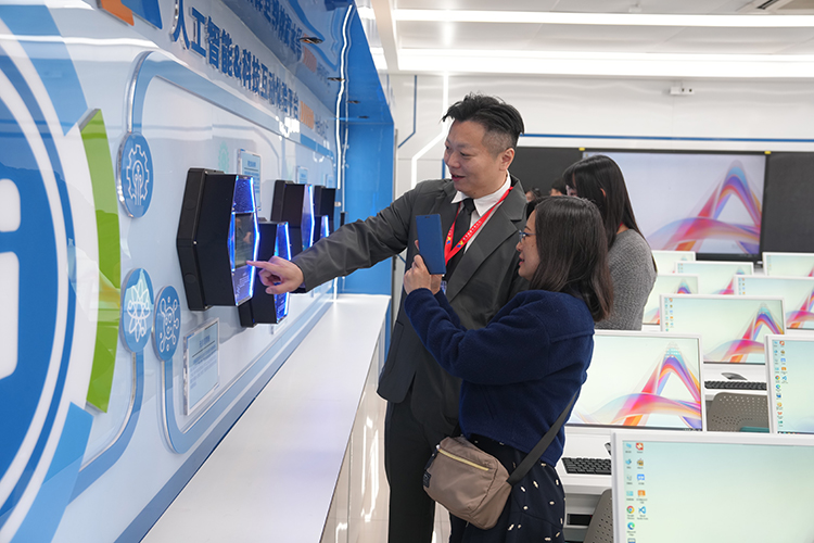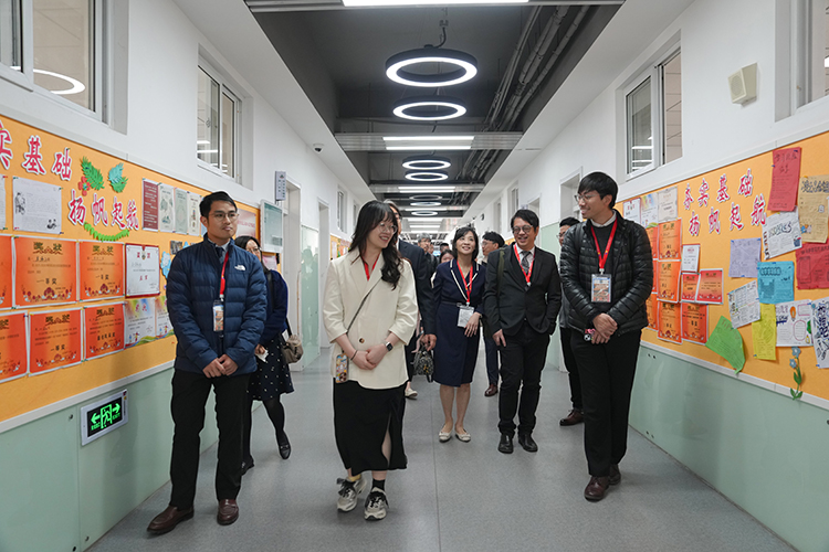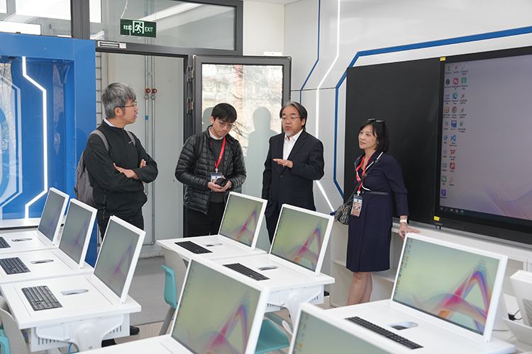 在吴刚副校长陪同下,代表团参观了操场、教学楼、人工智能智慧教室,现场体验智能教学设备与科技互动项目,深入了解学校智慧校园建设成果。