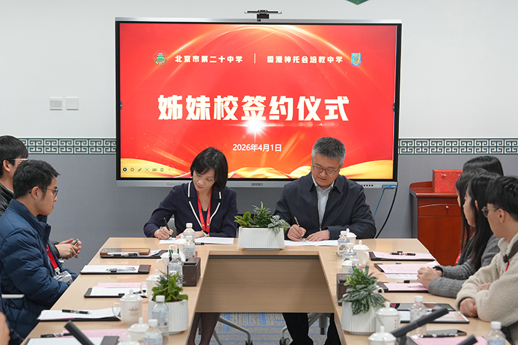 为深化京港教育交流合作,促进两地教育理念互鉴融通,2026年4月1日,香港神托会培敦中学林校长率领二十余位学校领导与教师代表团,莅临北京市第二十中学开展友好交流访问,并正式签署友好学校协议。