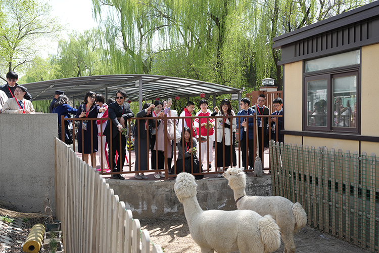 午餐后,代表团走进劳动基地,与我校学生一同锄地、松土、喂羊驼,亲身体验“知行合一”的劳动教育理念。