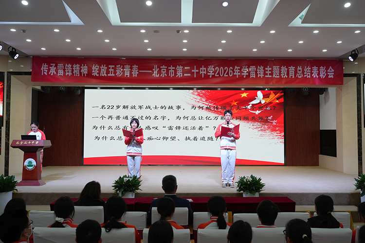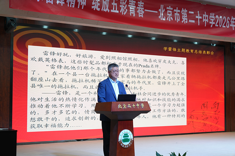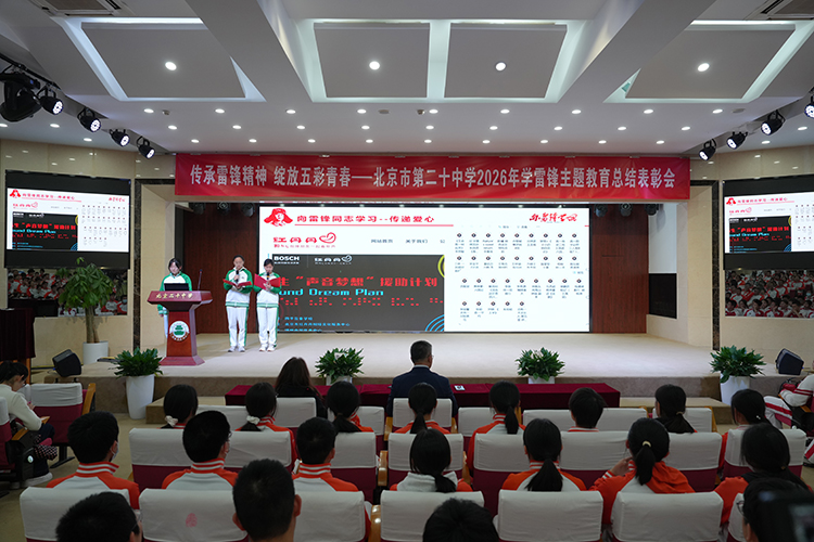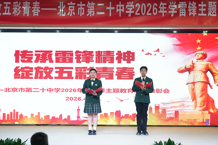 春风送暖,万物复苏。2026年4月9日,北京市第二十中学举行“传承雷锋精神,绽放五彩青春”学雷锋主题教育总结表彰会。董红军校长、李浴振副校长等校领导出席本次表彰会。