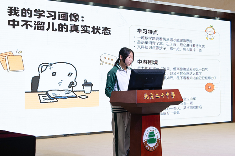 活动伊始,冀副主任为同学们带来了“开学第一课”。她用体育竞技精神勉励学子:“中考既是检验实力的赛场,更是超越自我的舞台。我们要永远相信自己,认可自己!信心与安心来源于每一天踏实地做好每一件事。”随后,学生代表武卓昆以《做一匹踏实向前的小马》为题分享了学习心得。她结合自身经验,给大家带来了调整心态、日常学习方法及考场应试作答的方法。她还系统梳理了语文日常积累、数学错题归因、物理实验探究、道法时政融合等学科备考策略,干货满满的分享赢得阵阵掌声。