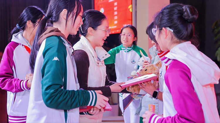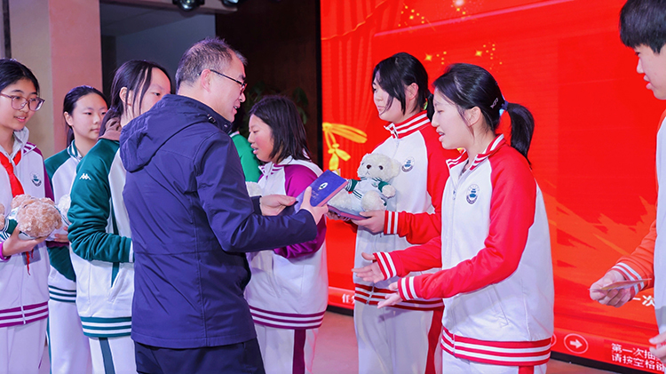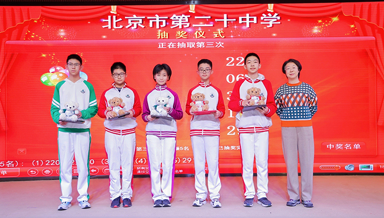 为增添赛事趣味性与互动性,比赛过程中穿插的三轮抽奖环节成为全场焦点。随着主持人宣读抽奖规则,台下响起学生们此起彼伏的期待欢呼;随着幸运号码逐一揭晓,各位领导上台为幸运儿们颁发奖品,中奖同学的雀跃尖叫与未中奖同学的爽朗调侃相映成趣,为紧张激烈的竞演氛围注入了轻松惬意的气息。