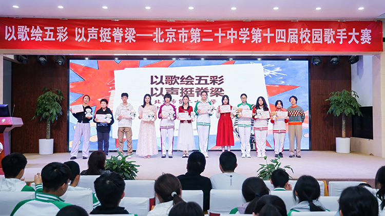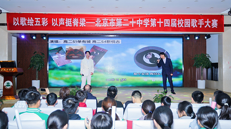 2025年12月18日,北京市第二十中学第十四届校园歌手大赛决赛在全校师生的热切期盼中盛大启幕。本届大赛以“以歌绘五彩,以声挺脊梁”为主题,旨在通过歌声展现学子风采、传递青春正能量,营造积极向上、充满活力的校园文化氛围。学生持专属门票有序入场,一同见证这场青春洋溢的音乐盛宴,现场掌声、欢呼声此起彼伏,氛围热烈非凡。