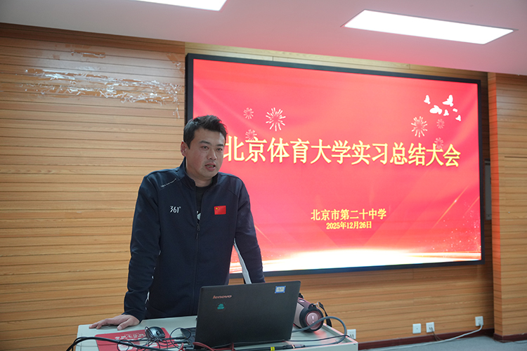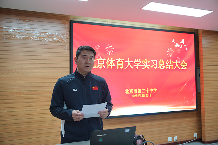 2025年12月26日下午,北京体育大学教育学院与我校共同举办的实习总结大会在二十中学党员轮训室召开。会议旨在总结本学期实习成果,深入贯彻落实《体育强国建设纲要》的创新实践,通过高校与基础教育“结对子”模式,探索体教融合人才培养新路径,共育新时代体育教育人才。