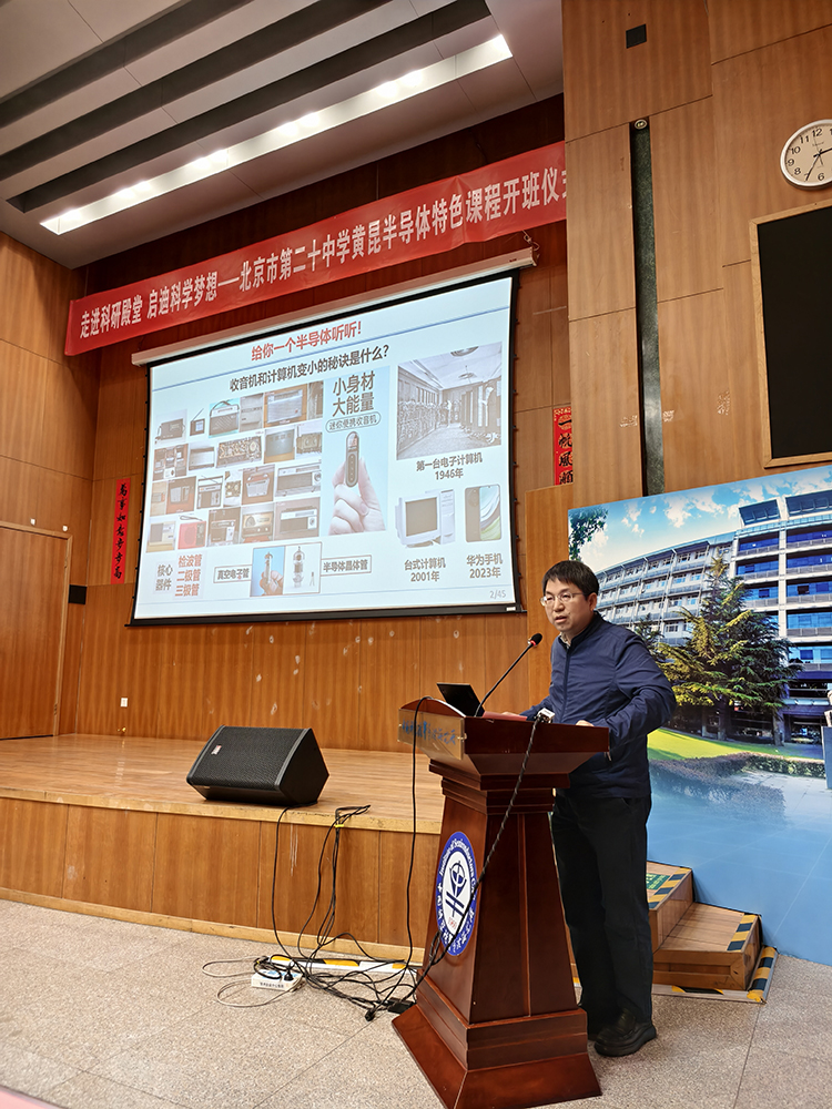此次开班仪式的圆满举行,不仅为二十中学子打开了通往半导体科研殿堂的大门,更将黄昆先生“中国有我们和没我们,make a difference”的家国情怀深植学子心中。愿同学们以此次课程为起点,怀揣科学梦想,勇攀科研高峰,用青春与智慧为国家科技自立自强贡献力量,真正以实干践行“make a difference”的时代担当。