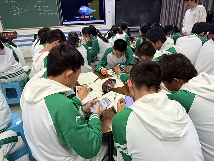课堂中,李老师引导学生优化测量方案,借助AI生成的HTML交互式地月位置演示程序,有效突破学生空间想象薄弱、球面模型转化困难的教学难点,将最核心的逻辑推理环节留给学生独立完成,让课堂重心始终聚焦于数学建模的核心逻辑与推理严谨性的强化。学生借助AI检索天文数据、完成复杂运算、分析测量误差来源、优化测算方案,完整经历“实际问题→数学建模→推导求解→验证反思→应用迁移”的数学探究全流程。本节课既让学生扎实掌握了正、余弦定理的综合应用方法,更引导学生树立了正确的AI工具使用观,实现了数学核心素养的协同培育。