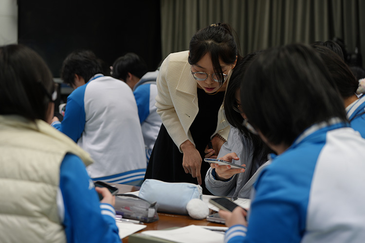 教学活动展示结束后,袁蒙蒙老师简短介绍了本节课的设计意图、教学实践流程及待改进点。参会的“筑梦工程”学员以及高中数学教研室的老师们对本节课进行了研讨,涉及AI应用、多平台结合、理念贯彻等多个教学亮点及未来探索方向。此次研究课不仅让学生在AI辅助下提升了元认知能力与创新思维,更探索出AI赋能高三数学复习课的新路径。数学教研室主任张程艳表示,将继续深耕人工智能与学科教学的融合,通过工具创新与教学模式优化,让智能技术真正成为学生数学思维发展的“助推器”。
