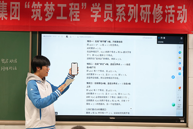 2026年1月5日下午,北京市第二十中学开展了以AI辅助教学为主题的“筑梦工程”学员研究课暨袁蒙蒙老师校级研究课——《利用“智启”研究含参分段函数》。