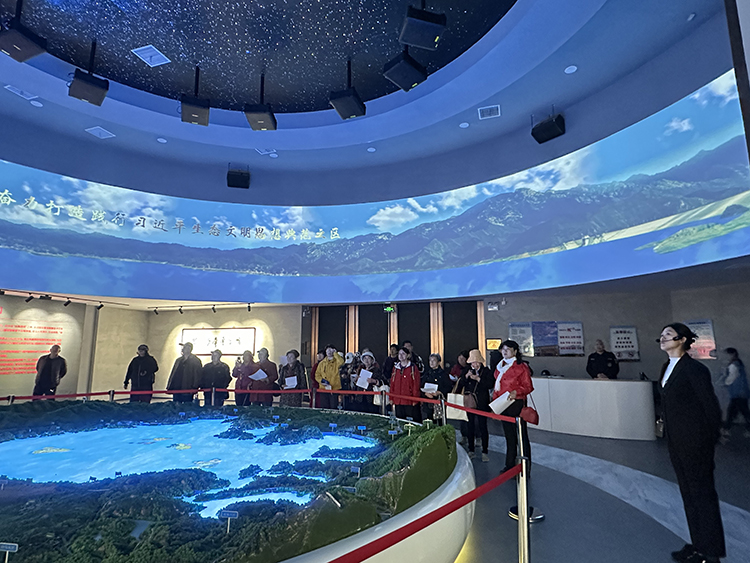 清晨8时,党员教师们准时集合,统一乘车前往密云水库展览馆。抵达展览馆后,在讲解员的引导下,老师们有序参观展厅。展览馆以密云水库建设发展为主线,通过珍贵老照片、实景还原、多媒体互动、声光电展示等多种形式,生动再现了20万建设者肩扛手推、艰苦奋斗的建库场景,讲述了密云人民舍小家、顾大局,世代守护首都“大水缸”的感人故事,全面展现了密云水库从决策兴建、移民奉献到生态守护、永续发展的辉煌历程。